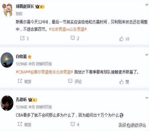 篮球记者“贾磊”发文点评:“珀塞尔绝杀了!山东队今天确实是打的更出色的那支球队,谢智杰很好的展现了自己打一号位的能力,将山东队的进攻梳理的井井有条。两支球队其实在最后时刻都犯了错误,但很显然北京队犯了更多的错误。如果说有什么疑问,就是不知道斯皮尔曼这场前面状态那么好,第四节为什么就不用了?斯皮尔曼前三节可是12中8拿了20分啊。”