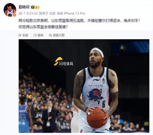 好像还不过瘾,随后,夏晓司老师再次发声,“两分险胜北京首钢,山东男篮取得五连胜,外援珀塞尔打得坚决,绝杀对手!你觉得山东男篮全场最佳是谁? ”