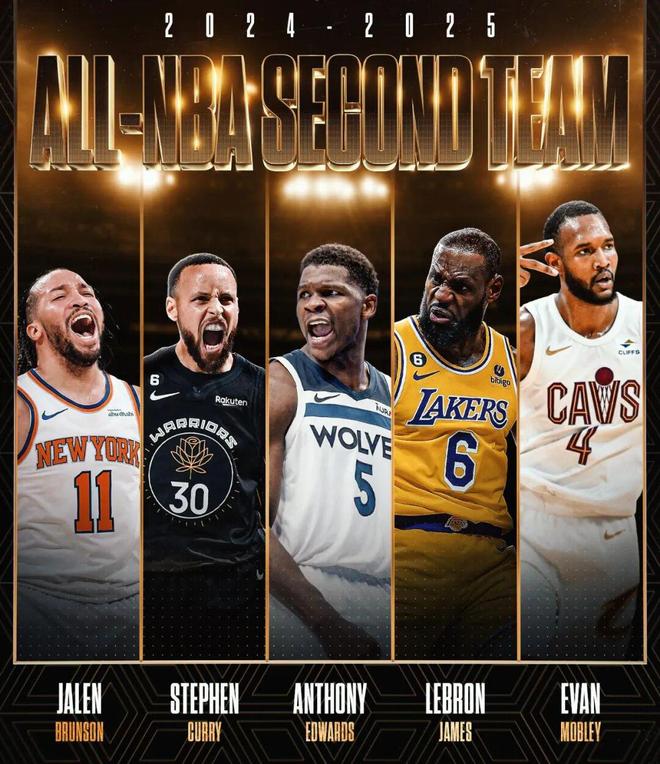 事实也是,詹姆斯上赛季不仅入选了全明星,还入选了最佳阵容二阵,这也是他连续第21个赛季入选最佳阵容,与他一起入选最佳二阵的分别是:莫布利、爱德华兹、布伦森、库里。