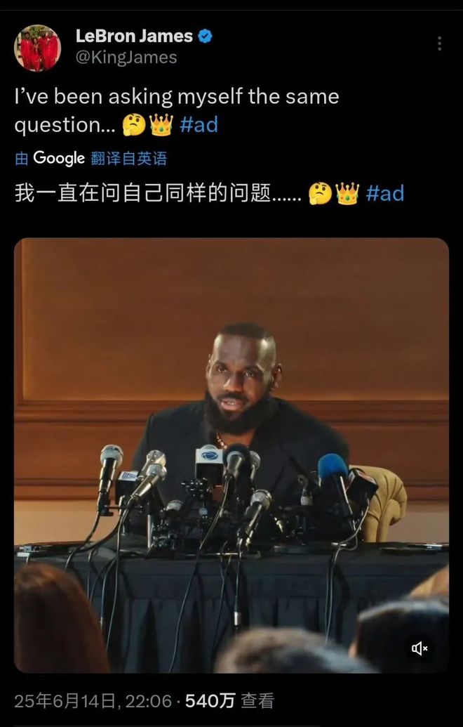 不过吧,也有球迷注意到了一些不同,以往詹姆斯发布广告的时候,内容都会带伤“ad(指广告)”的标签,但这一次并没有——这似乎更加支持了詹姆斯宣布退役的可能性?