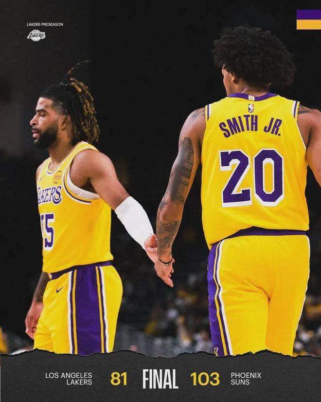81比103,湖人以22分的劣势输给了太阳。虽说季前赛的胜负什么用都没有,但这个场面也确实太难看了,看得出来大家都好久没打正式比赛,对球场很生疏。
