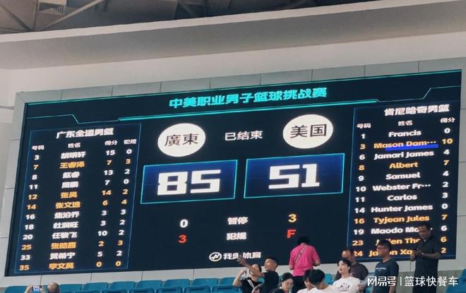 易边再战,广东队延续了上半场的火热状态,进攻端火力非常凶猛,整个第三节比赛,他们单节又砍下了21分,掀起一波21-13的攻击波,单节又赢了对手8分。凭借着第三节的一波流,广东队已经将领先优势扩大到25分。末节比赛,广东队在第四节继续保持高强度防守,整个第四节他们单节拿下17分,而美国队这边,他们单节则拿到8分,最终,广东队以85-51大胜对手34分。