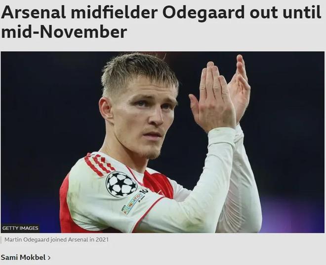BBC记者SM消息,阿森纳队长厄德高预计在11月的国际比赛日之后才能复出。