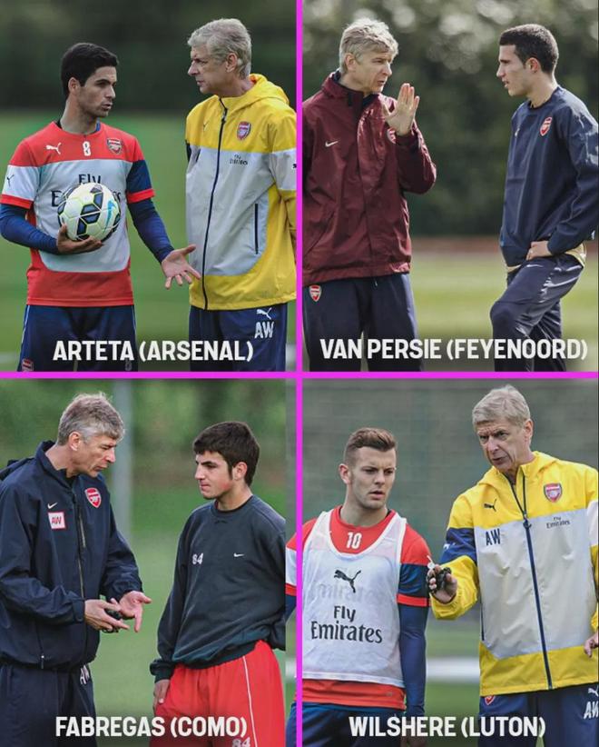 阿尔特塔在阿森纳的成绩不用多说(虽然很难说塔子是温格的学徒,但绝对也会受影响),范佩西(球迷即使不承认,他也是受教授影响最大)在费耶诺德也是带的风生水起,小法估计早晚要执教豪门的,维埃拉也是常年能混迹五大联赛的主帅,这就很不错了。现在还有威尔谢尔,未来可能还有扎卡、拉姆塞等等……