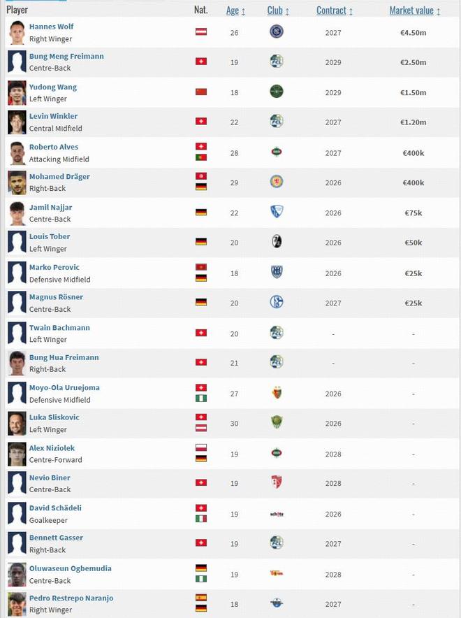 德转市场网显示,在ESM代理的球员中,身价最高的球员沃尔夫今年26岁,身价450万欧元,目前在纽约城踢球;18岁的瑞士小将邦格-弗莱曼身价第二高,目前效力于瑞士超球队卢塞恩。王钰栋签约后,将成为ESM公司里德转身价第三高的球员。目前ESM代理的球员主要效力于德国和瑞士联赛。
